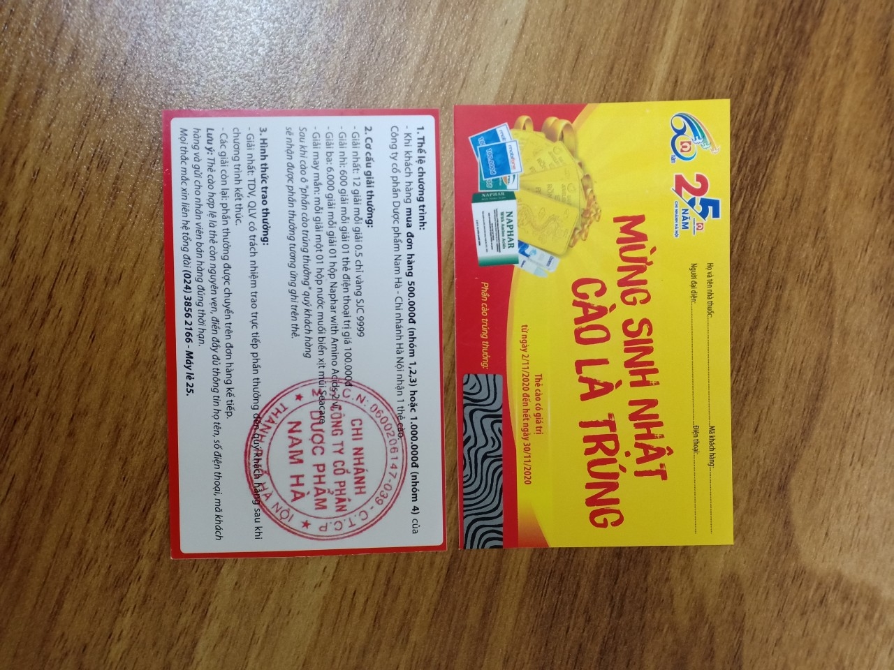 + Thẻ hai trong một: 54 x 43 mm... Bao gồm 02 trường cào được in trên 01 thẻ.